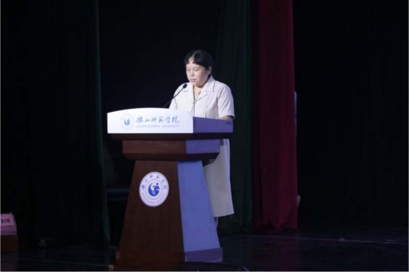 博士才得吉也向新生致以热烈欢迎,同时鼓励大家在大学中丰盈自我、涵养文学品格,为新生指明新的学习方向。紧接着,23 级学生代表王雨琦上台分享自身成长经历。随后,25 级新生代表王瑞进行发言,表达了对进入乐师的期待。在庄严的氛围中,2025 级全体新生在专业教师的带领下,全体新生庄严起立举起右手,郑重地进行专业宣誓。