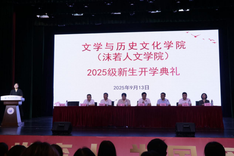 本网讯(文/杨林芳 图/黄屹巍)9月13日上午,文学与历史文化学院(沫若人文学院)2025级新生开学典礼在我校实训楼多功能厅顺利举行。学院领导、教职工、高年级学生代表齐聚现场,共同迎接2025级全体新生,开启求学新征程。此次典礼由学院党委副书记魏群主持。