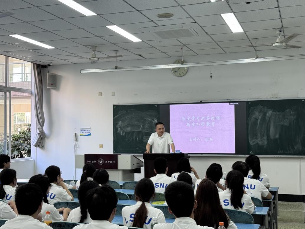 在历史学专业导论课中,陈旭老师介绍了课程体系、实践教学环节及就业前景,强调历史学习不仅是知识的积累,更是批判性思维与人文素养的培养。张晓程老师则从学院发展历程出发,激励新生扎根典籍、关注现实,让历史智慧服务时代发展。