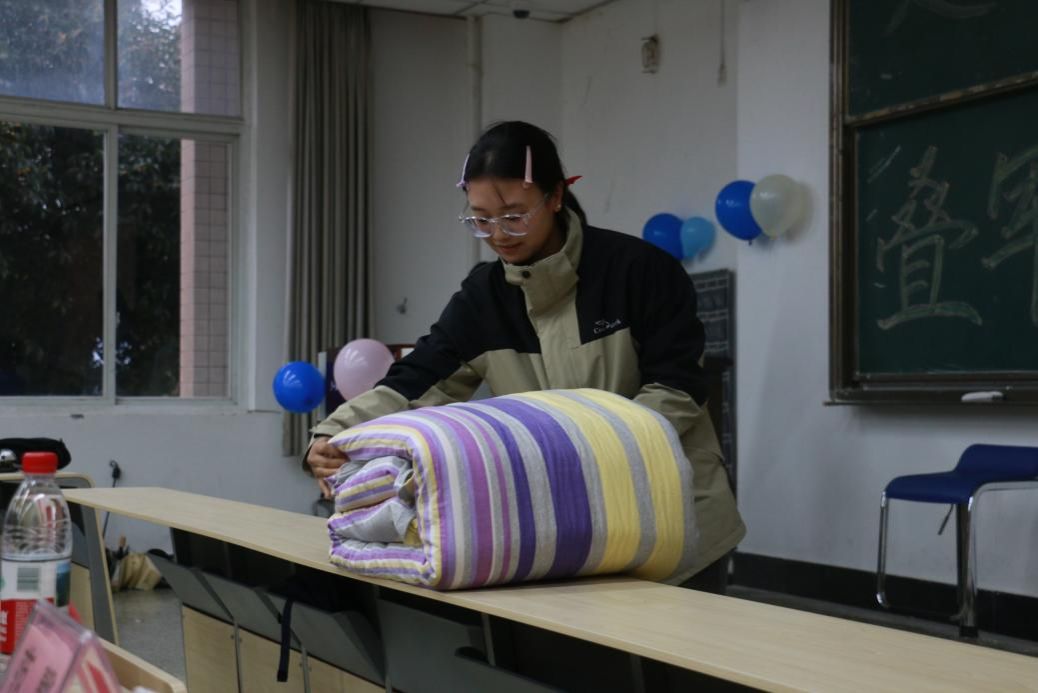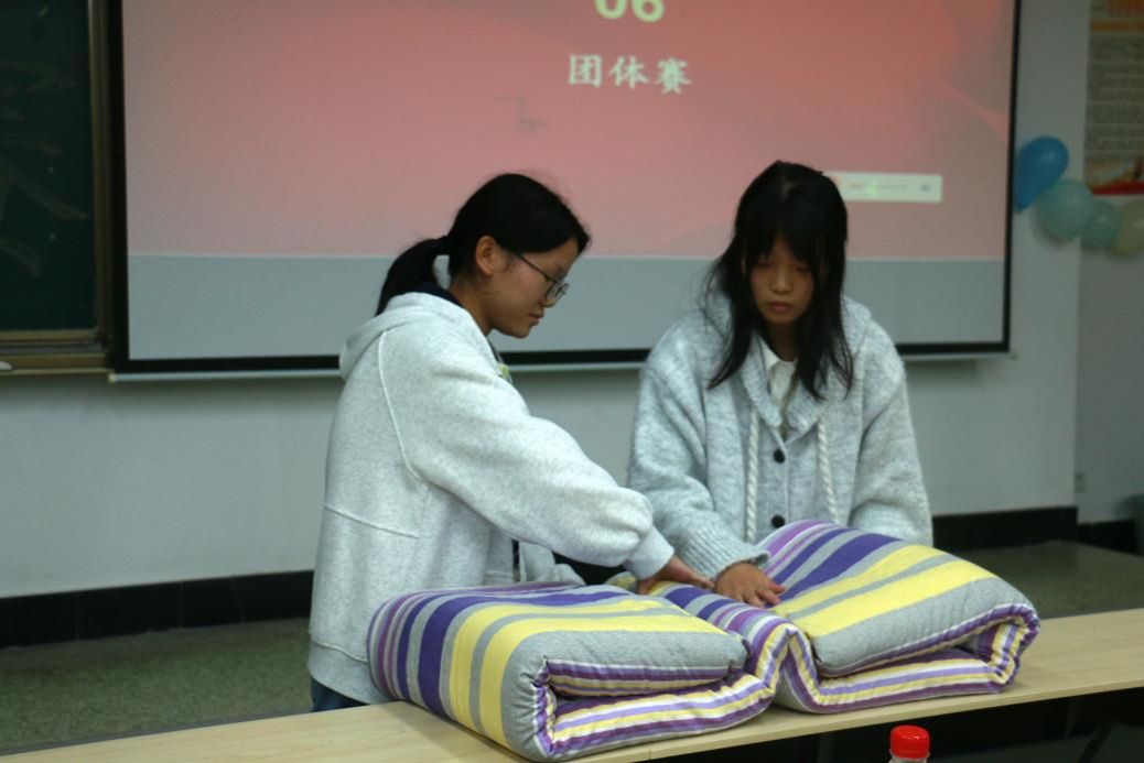 (文/阿的牛牛 徐子皓 图/刘靖、陈杨)雨润秋阶风送爽,10月23日晚6点,淅沥雨声漫入行知楼125教室,文学与历史文化学院学生分会自律部与权益部联合主办的“叠军被大赛”正悄然启幕。