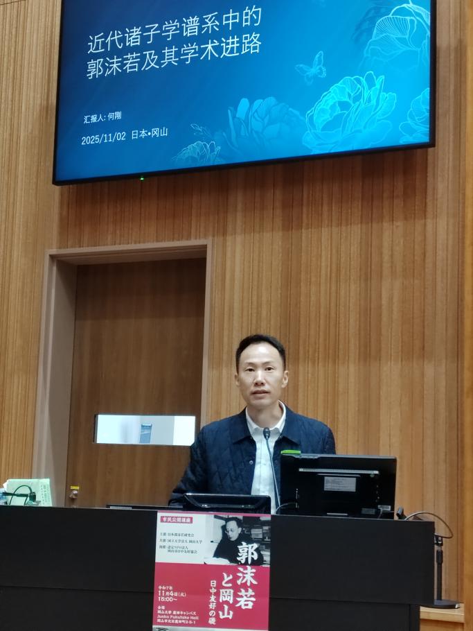本网讯(文图/何刚)2025年11月1日至5日,第八届国际郭沫若学会国际研讨会在日本冈山大学隆重召开。本次会议以“跨文化视野下的郭沫若与创造社研究——纪念郭沫若留学冈山一百一十周年”为主题,由国际郭沫若学会、日本郭沫若研究会与冈山大学联合主办。会议涵盖郭沫若的异文化体验、文学创作、史学考古研究、书法艺术等多个领域,为全球郭沫若研究学者搭建了高水平的学术交流平台。乐山师范学院四川郭沫若研究中心廖久明、何刚应邀参会,与来自中、日、韩、美等国学者齐聚一堂,共话学术传承与创新。
