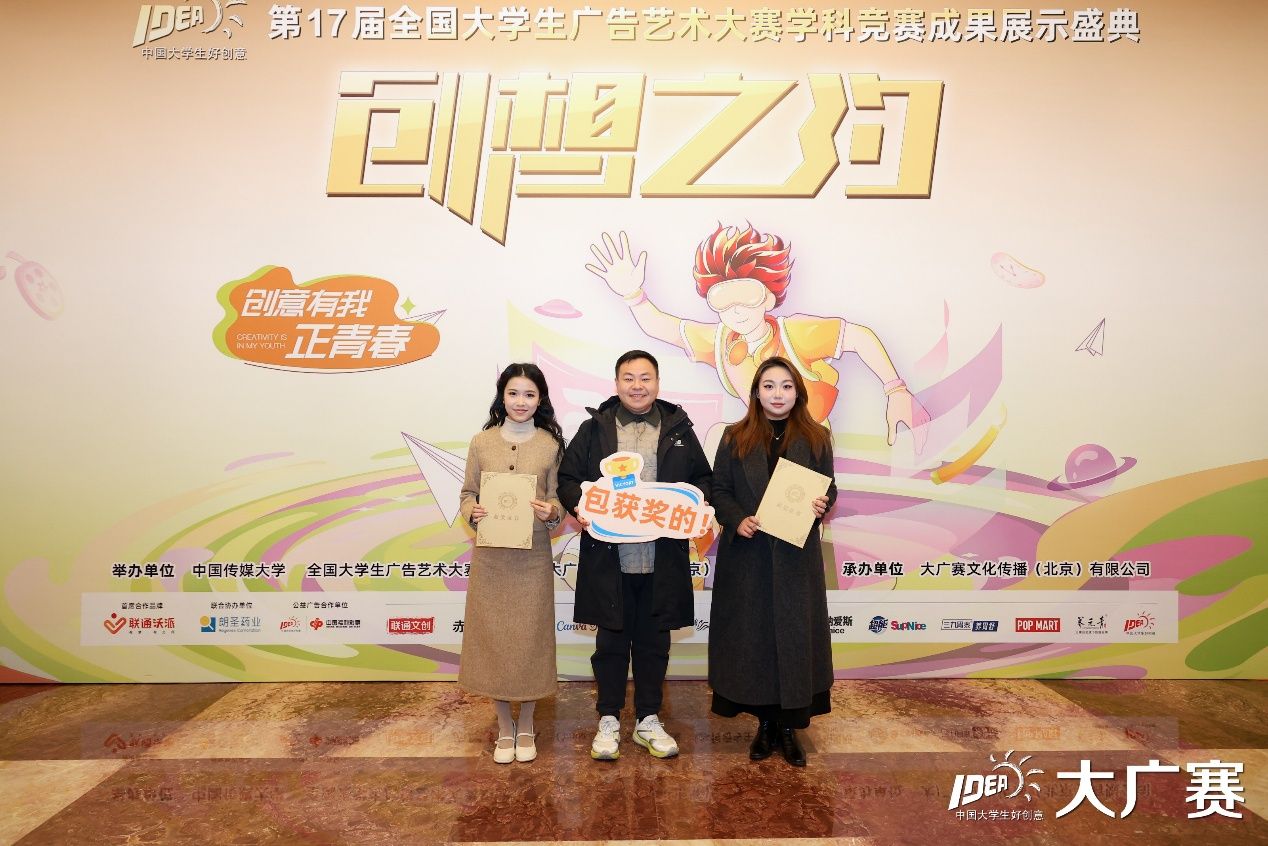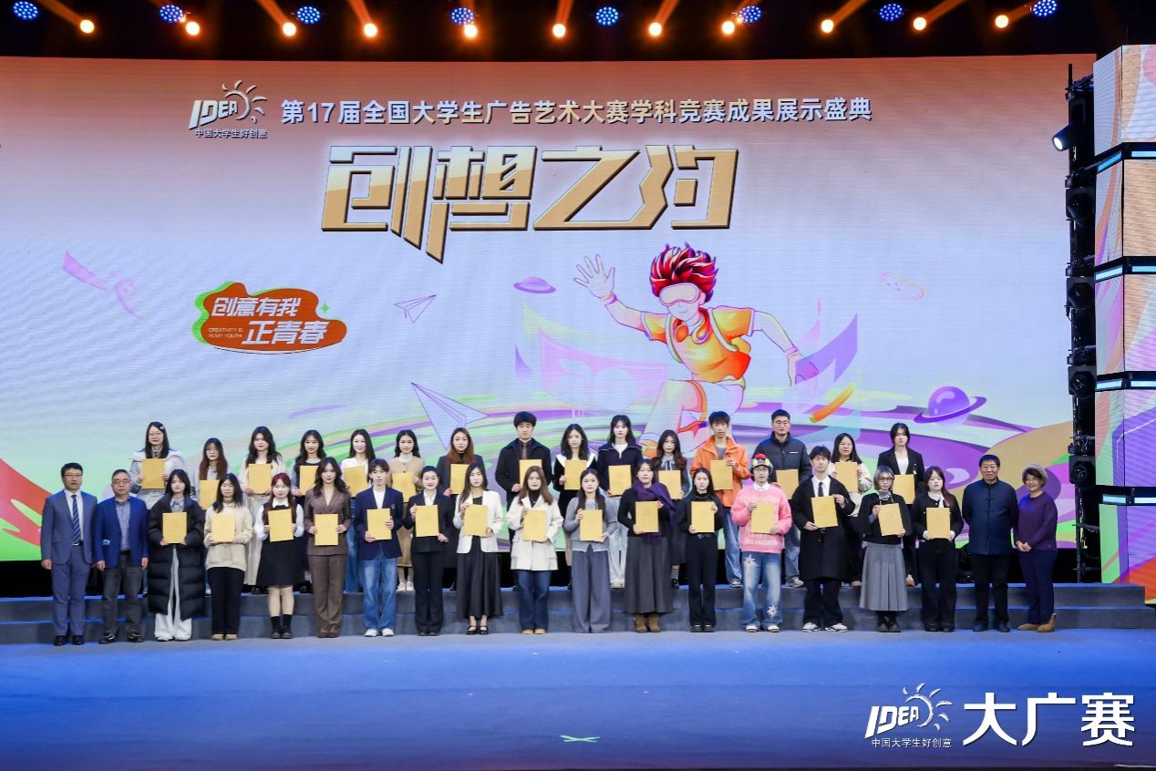 本网讯(文/图胡巍可) 2025年12月6日上午,第十七届全国大学生广告艺术大赛学科竞赛成果展示盛典在北京全国政协礼堂举行。我校学子在本届比赛中表现突出,共荣获国家级奖项17项,国家等级奖获奖数创下我校参与该项赛事以来的历史最好成绩。