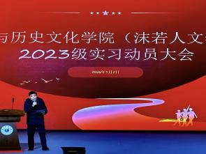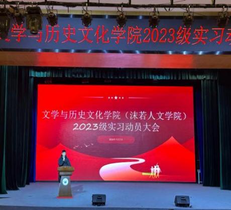 本网讯(图/陈杨 刘靖 文/马语婕 袁文洁)。2025年1月7日下午6点,文学与历史文化学院(沫若人文学院)2023级实习动员大会在我校实训楼多功能厅顺利召开。学院领导、老师齐聚一堂,为即将奔赴教学一线的2023级全体师范生们点亮实习征程。