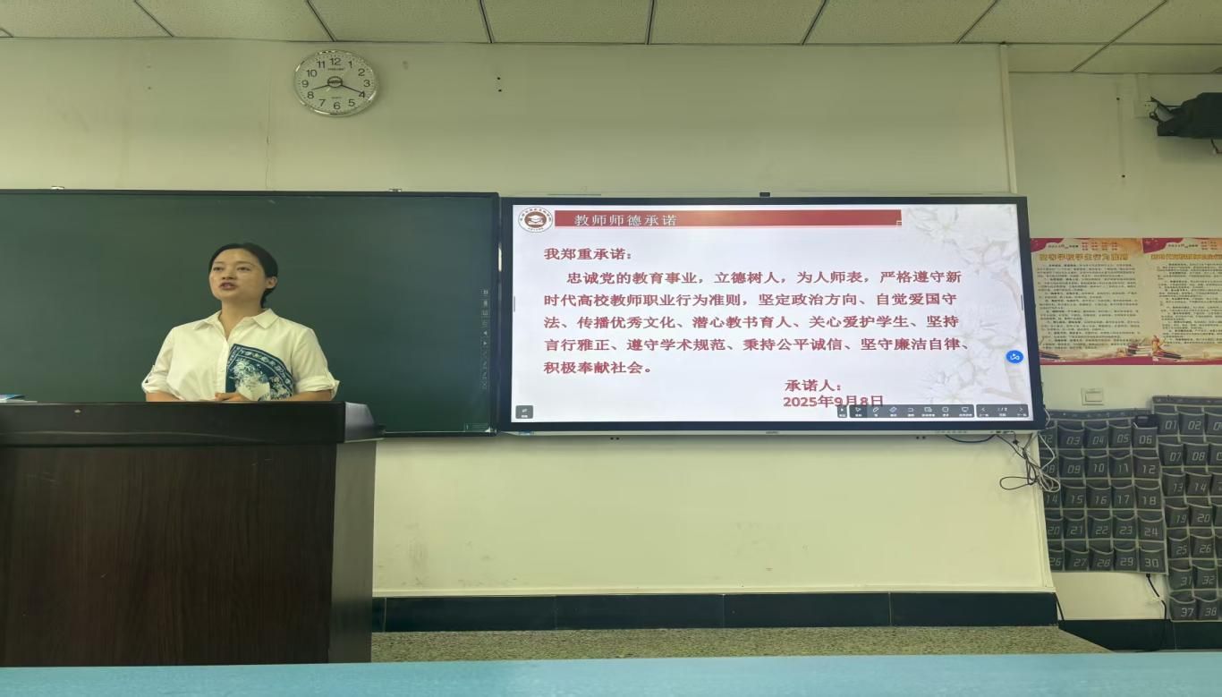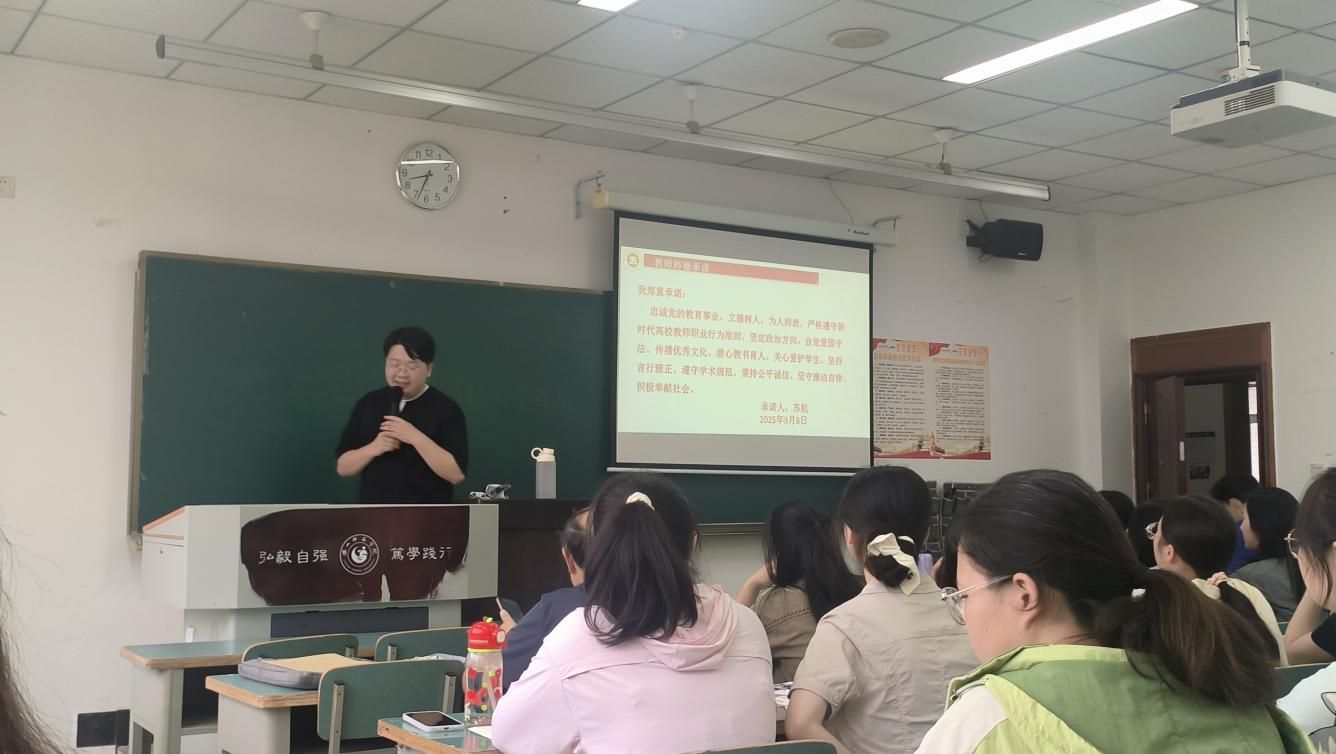 本网讯(文/图 王晓琴)9月8日上午,新学期伊始,文学与历史文化学院的老师们以庄重的仪式,在教学工作开启之际进行教师师德承诺,用行动筑牢育人初心。